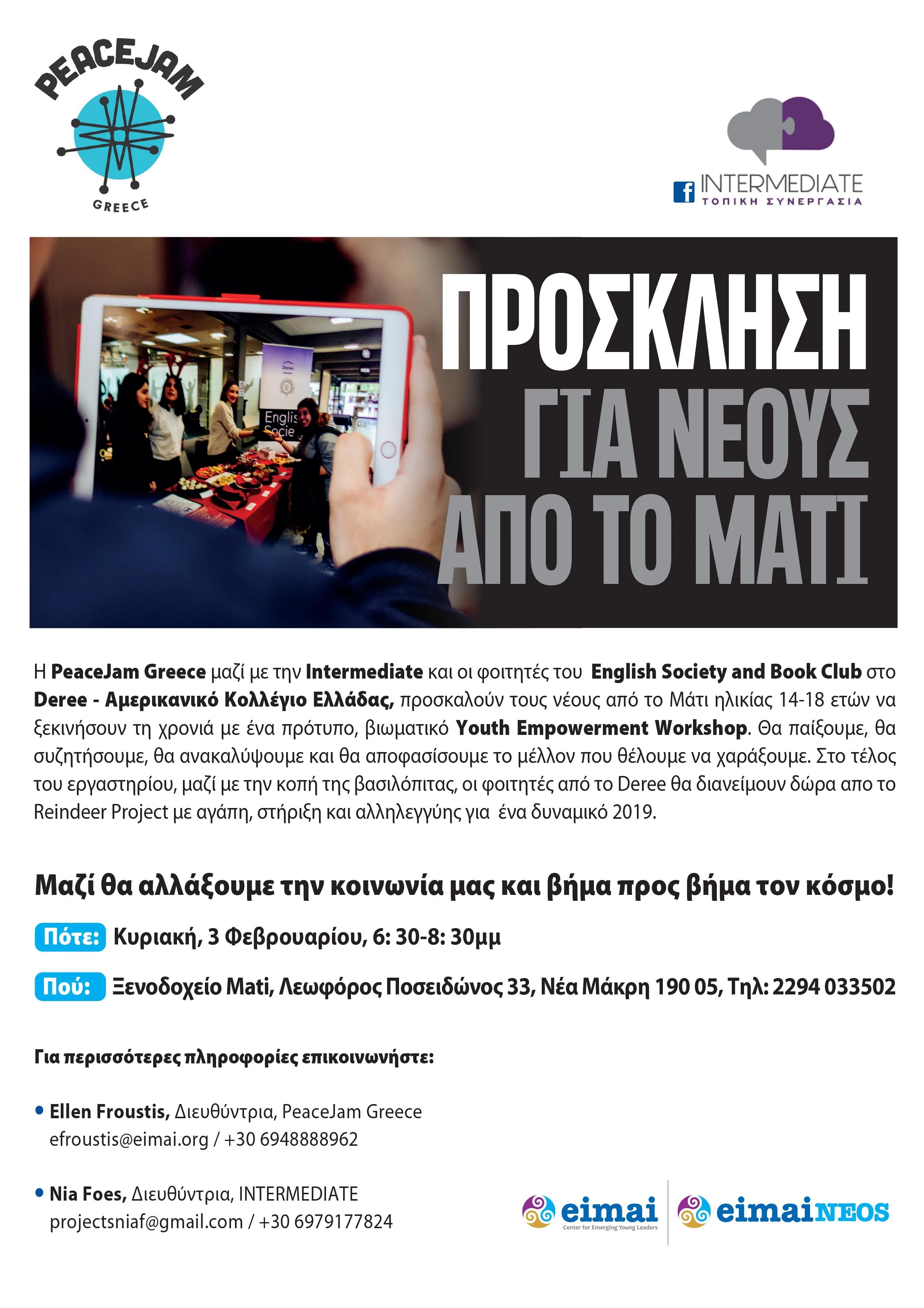 Collaboration between PeaceJam Greece-Intermediate-Deree-The American College of Greece and Gymnasio Neos Voutzas